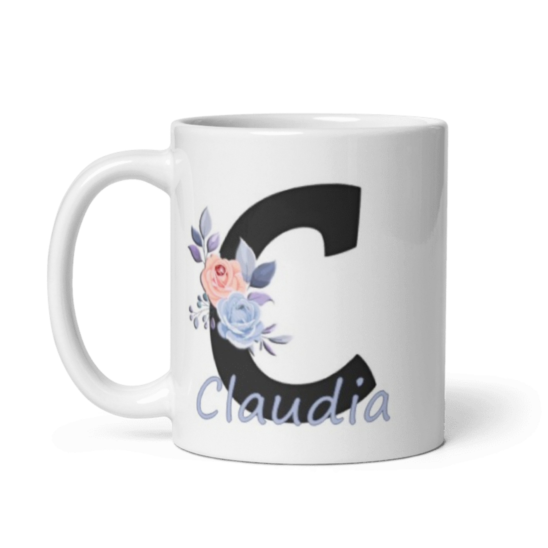 OfertaTaza Inicial de Color Azul Con Flores + Nombre